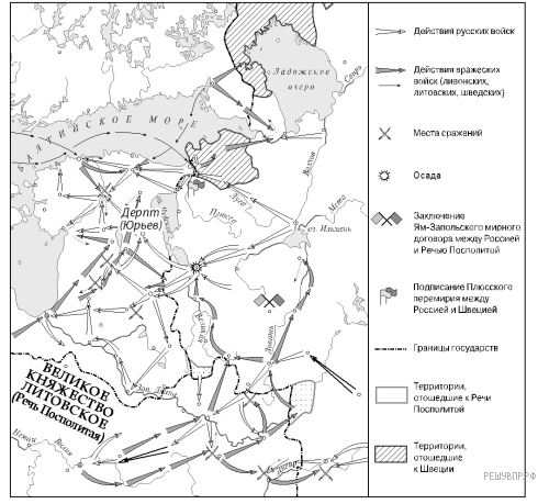 Война, события которой отражены на карте, началась в период правления в России Ивана Четвёртого.