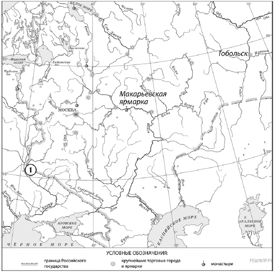 Подпишите на карте город Тобольск и Макарьевскую ярмарку.